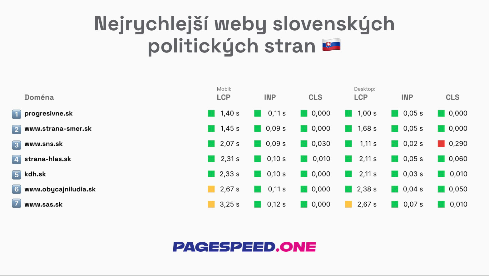 Na Slovensku jsou nejrychlejší weby progresivne.skstrana-smer.sk, oba kolem 1,4 s.