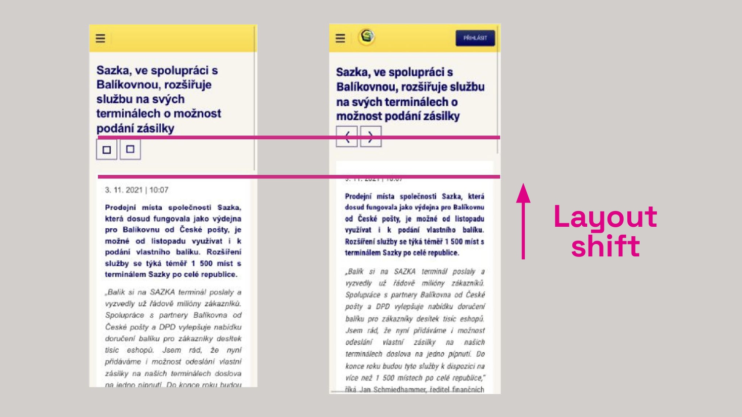 CLS není podivná zkratka, ale elektrický šok pro uživatele, kterému text poskočí přesně ve chvíli, kdy se chystá číst. (Z naší optimalizace fontů pro Sazka.cz)_